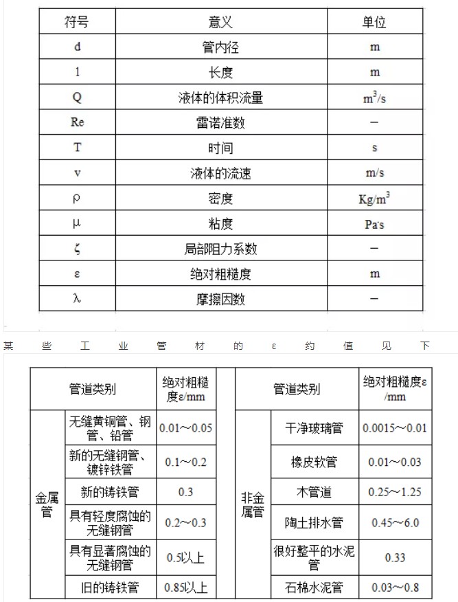 計(jì)算式中各參數(shù)符號(hào)的意義某些工業(yè)管材的ε約值見下表 管網(wǎng)局部阻力計(jì)算 常用管件和閥件底局部阻力系數(shù)ζ
